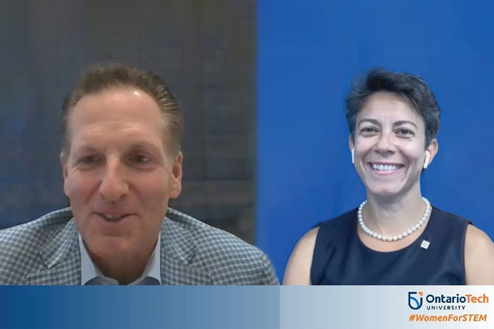 Take calculated risks and believe in yourself. Take ownership of your career and move forward. This advice came from the distinguished speakers who shared their career experiences in science, technology, engineering and mathematics (STEM) at Ontario Tech’s Women for STEM Summit, held virtually on October 14. Three hundred attendees were inspired by professional leaders Rania Llewellyn, President and CEO, Laurentian Bank of Canada; Paula Hodgins, Senior Vice-President, Global Accounts and Telco, VMWare; Karine Glenn, Strategic Project Director, Nuclear Waste Management Organization; Vandana Juneja, Executive Director, Catalyst Canada, and Jennifer McKellar, Associate Professor, Faculty of Energy Systems and Nuclear Science, Ontario Tech University—women who are making their mark in STEM as they help their organizations support employees during the transition from the COVID-19 period. Women for STEM keynote speaker Rania Llewellyn shared her experiences and challenges as well as insights into leadership during the pandemic. As the first woman to lead one of Canada’s national banks, Rania reminded participants we all can help move the dial toward gender parity in STEM by engaging all employees. The Summit is just one of the components of Ontario Tech’s unique Women for STEM program. Led by a volunteer council, the program is built on three pillars to engage and empower women: scholarships, mentorship, and the celebration and promotion of achievements. read more